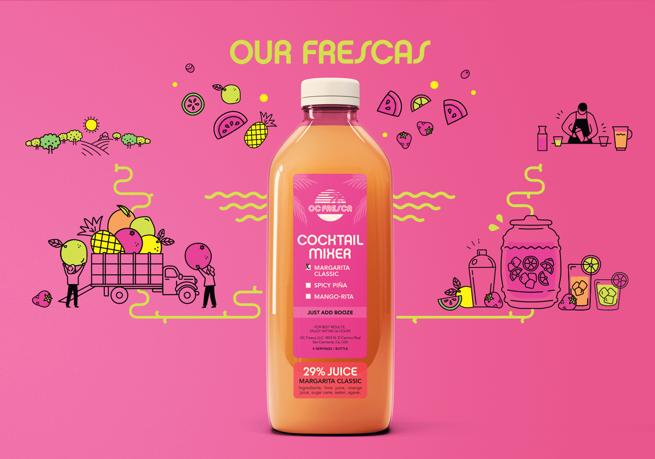 The client already had branding established with a logo and restaurant menu. They wanted to add illustrated icons that highlighted the fresh fruit focus and California personality.